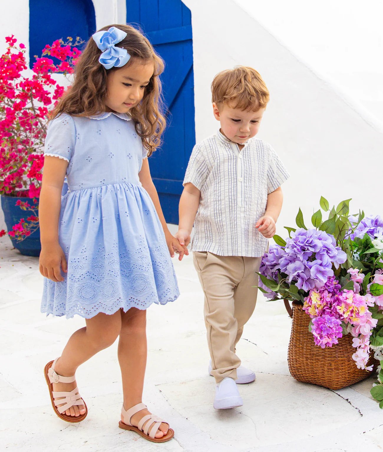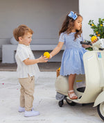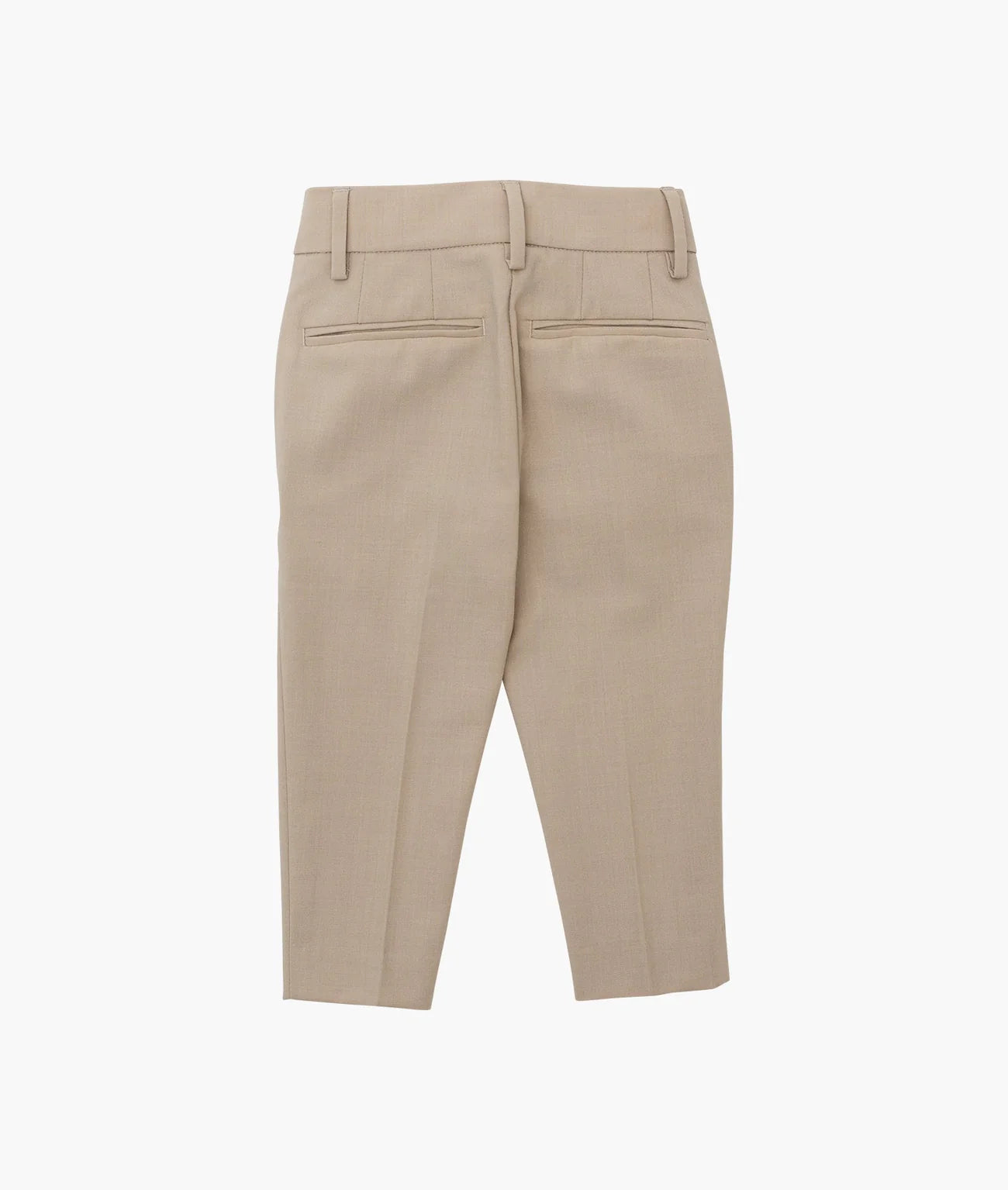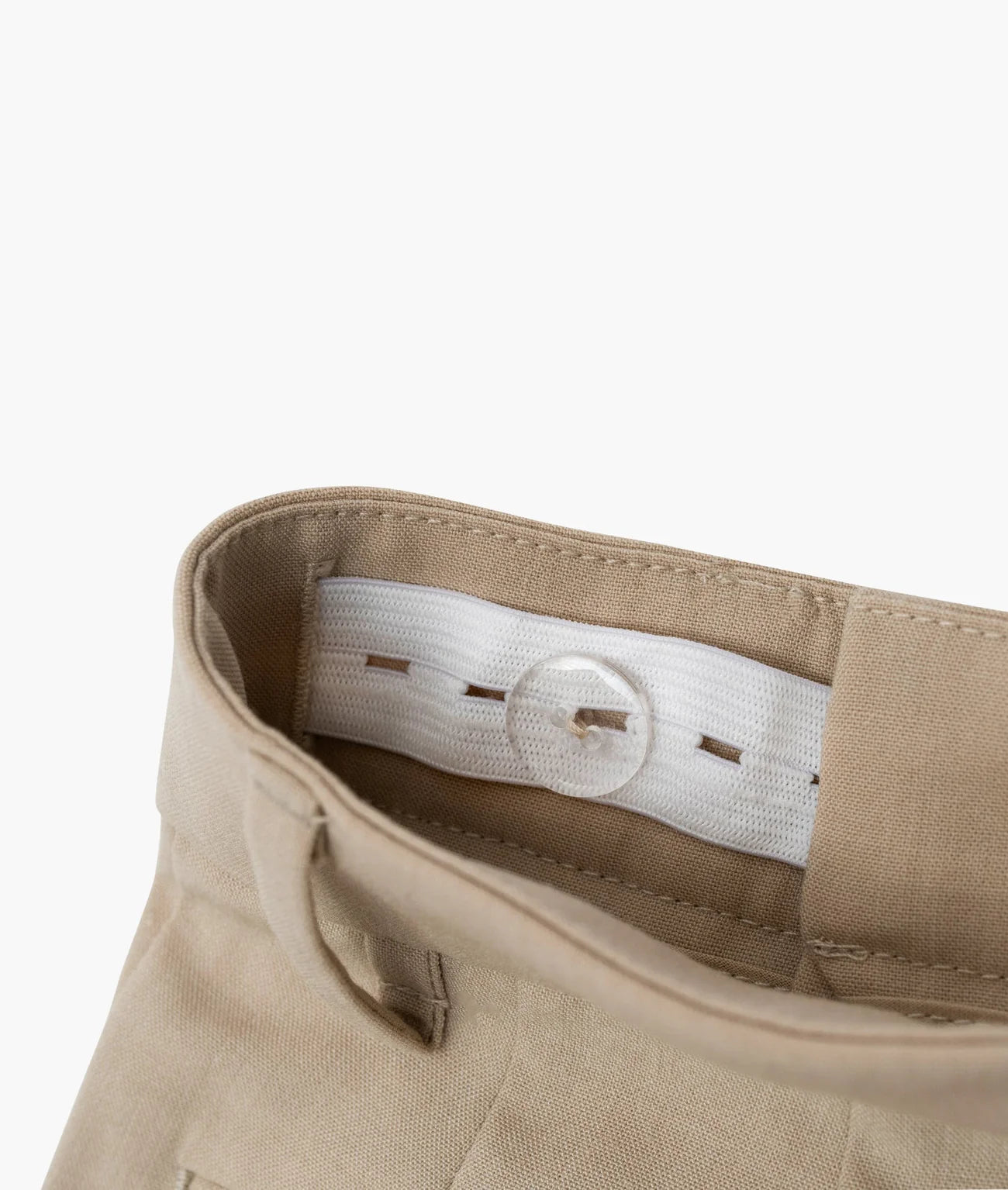 Timeless and versatile, these pants combine soft, stretch fabric with a 100% cotton lining for all-day comfort. The adjustable waistband ensures a perfect fit, while the neutral beige tone makes them ideal for both casual and special occasions.