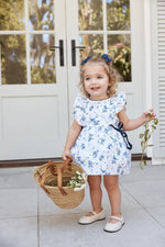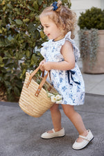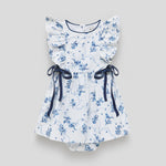 This 'Frill Sleeve Romper Dress' in Little Harry Hampton's exclusive 'Bows in the Garden print' combines charm and comfort. Made from soft 100% cotton sateen with velvet ties, contrast neck binding, and custom back buttons, it’s designed for effortless style and all-day ease.