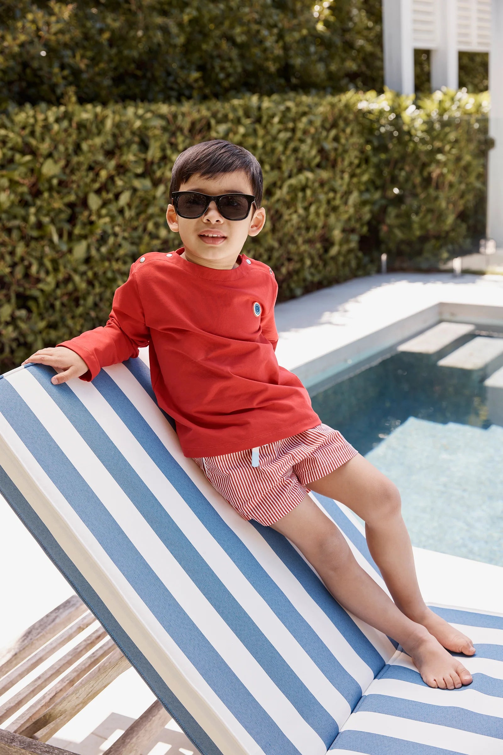 These unisex Sailor Shorts feature a timeless nautical stripe, perfect for everyday wear or special occasions. Contrast pocket binding add a polished finish and a relaxed fit and ideal length make them both comfortable and effortlessly stylish.