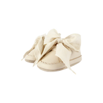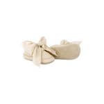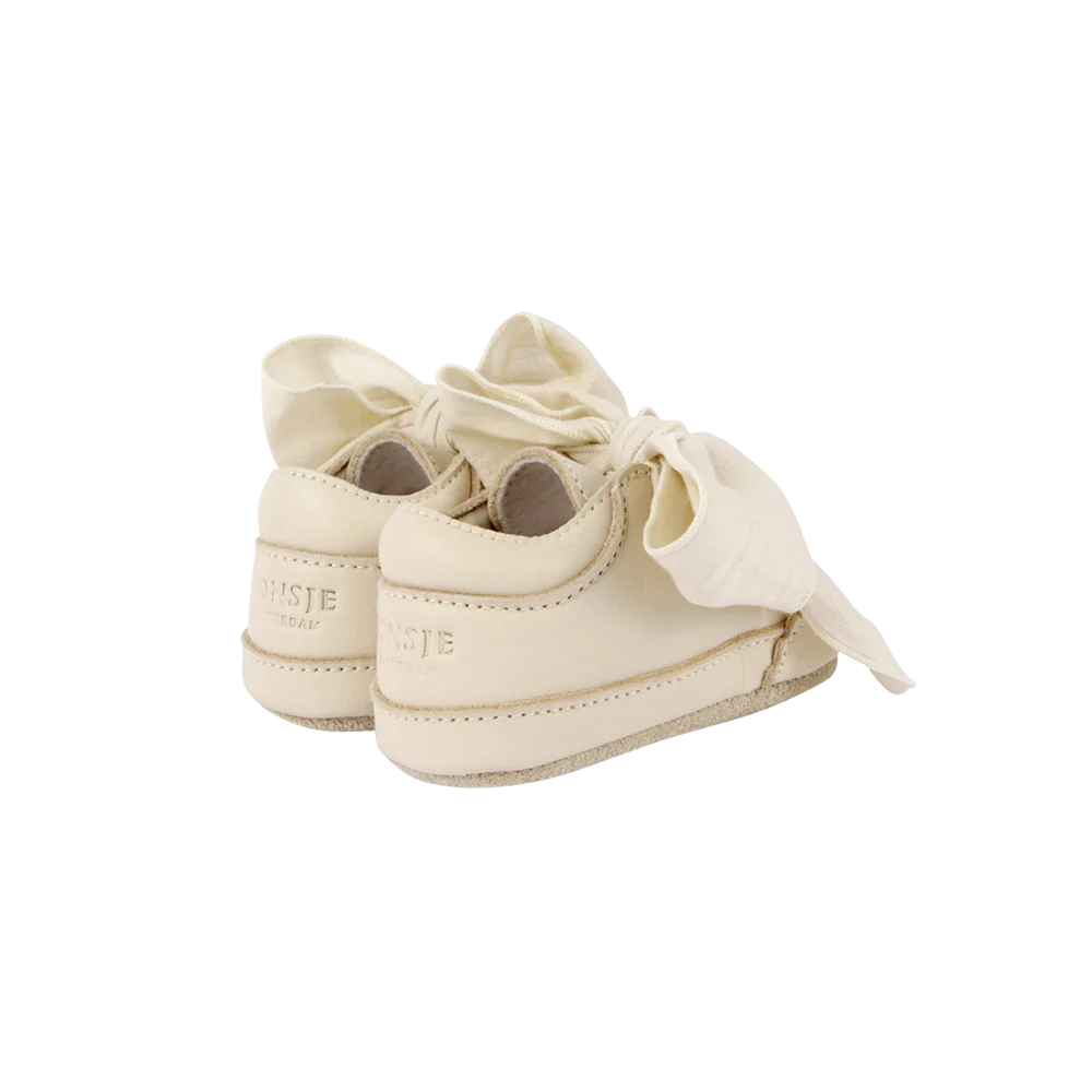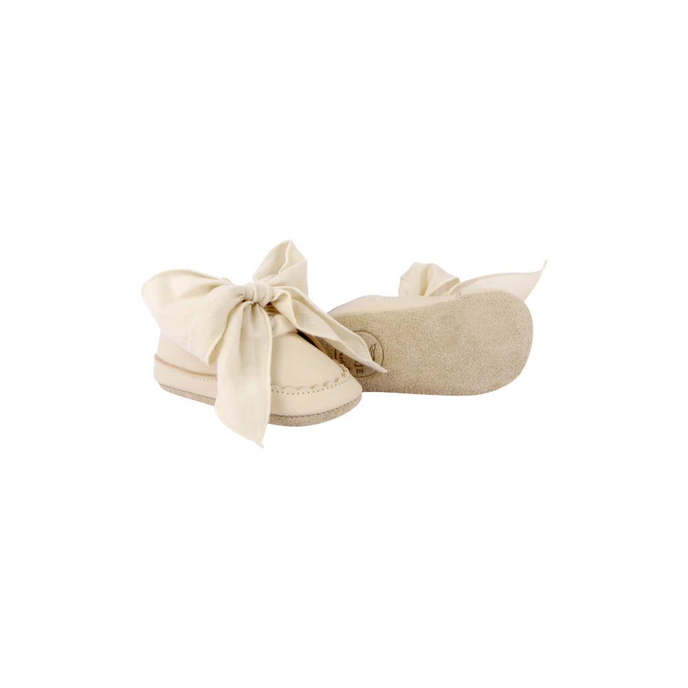 The cutest and most comfortable shoes for your little girl's first steps. They are made from the softest premium leather and finished with small wavy edges. A beautiful chiffon bow gives a stylish finishing touch.