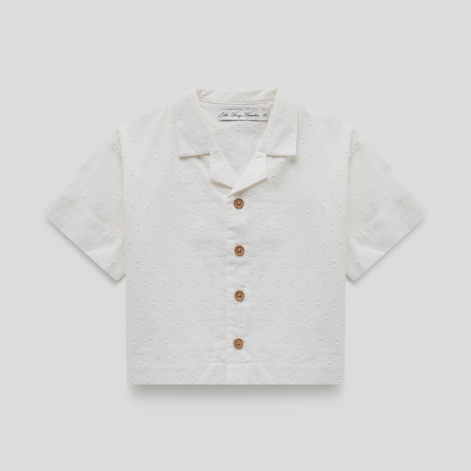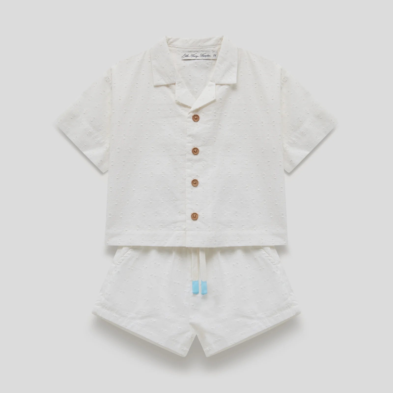 Featuring custom buttons with "Little Harry" branding, it adds a unique touch to the classic resort look. The lightweight, breathable fabric ensures comfort all day long, making it the ideal piece to pair with the matching shorts for a complete, stylish outfit that’s perfect for sunny days.